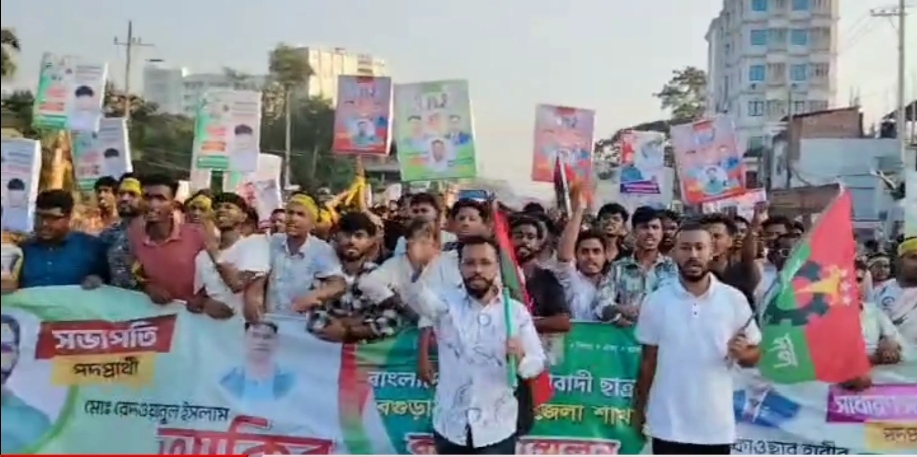 বগুড়া সদর ছাত্রদলের কর্মী সম্মেলনে বিশাল মিছিল।